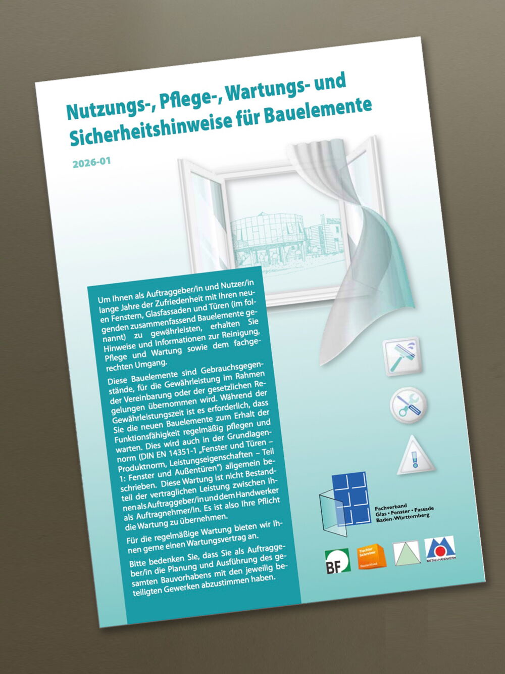 Neue Nutzungs-, Pflege-, Wartungs- und Sicherheitshinweise für Bauelemente online verfügbar